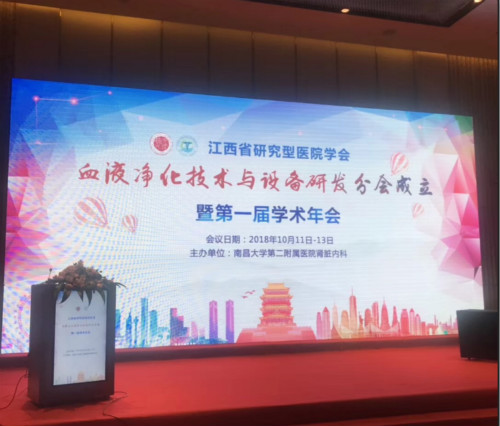 2018年10月12日,江西省研究型學會血液凈化技術與設備研發分會在美麗的南昌艾溪湖畔南昌市綠地華邑酒店舉行了盛大的成立儀式暨第一屆學術年會,會議特別邀請了臺灣嘉義基督教醫院營養科張靜芬主任、中南大學湘雅二醫院彭佑銘主任、中國科學技術大學附屬一醫院任偉主任、杭州市第一人民醫院王鳴主任、上海中醫藥大學附屬龍華醫院施婭雪主任、同濟醫院寧勇副主任、南昌大學第一附屬醫院陳欽開主任、江西省人民醫院鐘愛民主任、南昌大學第二附屬醫院蘇海主任、南昌大學第二附屬醫院周衛主任等醫護人員。