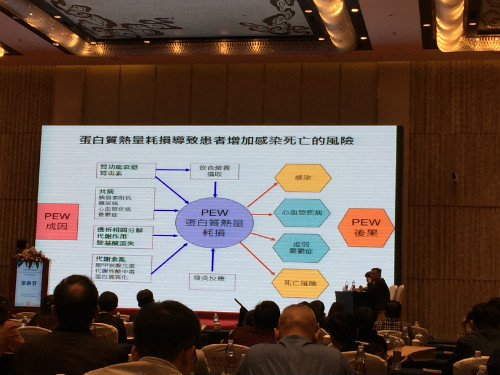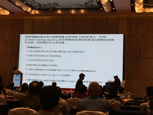 隨后的學術會議中,來自寶島臺灣和全國各地的腎臟病專家學者圍繞“血液凈化安全管理”這個主題,分別對血液凈化患者的血管通路管理、營養代謝管理、心腎綜合征管理、透析護理管理等血液凈化領域的相關臨床切實問題,分享、交流了自已在腎臟病治療方面的寶貴經驗和研究成果。來自寶島臺灣嘉義基督教醫院營養科的張靜芬主任第一位出場,結合自已30多年來的工作經驗,同與會嘉賓就腎臟臨床營養不良的診治進行了詳細的分享、探討。