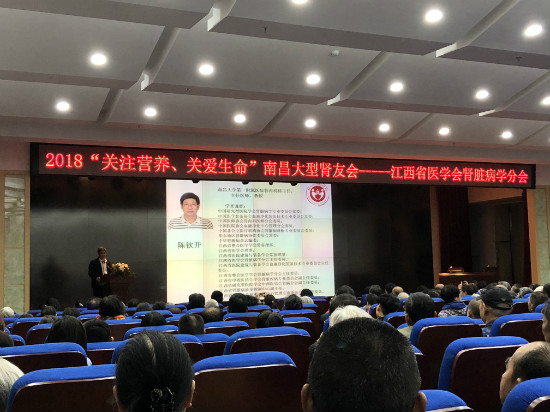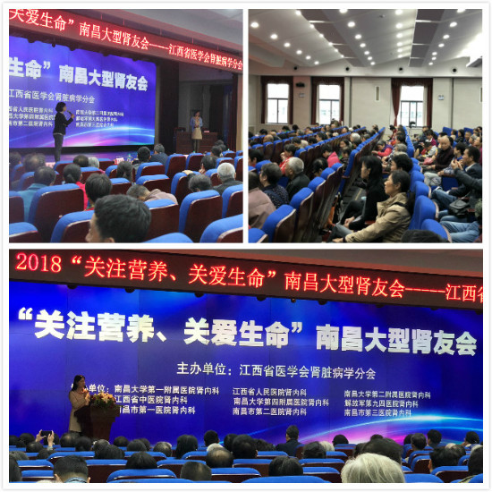 2018年10月14日,江西省首屆大型腎友會在南昌大學第一附屬醫院順利召開!由江西省醫學會腎臟病學分會主辦,聯合南昌大學第一附屬醫院腎內科、江西省人民醫院腎內科,南昌市第二附屬醫院腎內科、江西省中醫院腎內科、南昌市第一醫院腎內科,南昌大學第四附屬醫院腎內科,解放軍九四醫院腎內科,南昌市第二醫院腎內,南昌市第三醫院腎內科共同舉辦。本次講座主題“透析病患的營養保健”。