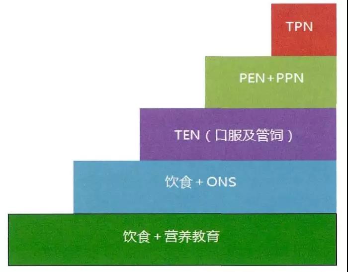 注:TPN,total parenteral nutrition,全腸外營養;TEN,total enteral nutrition,全腸內營養;PPN,partial parenteral nutrition,部分腸外營養;PEN,partial enteral nutrition,部分腸內營養;ONS,oral nutritional supplements,口服營養補充;營養教育包括飲食調整、飲食咨詢與飲食指導。