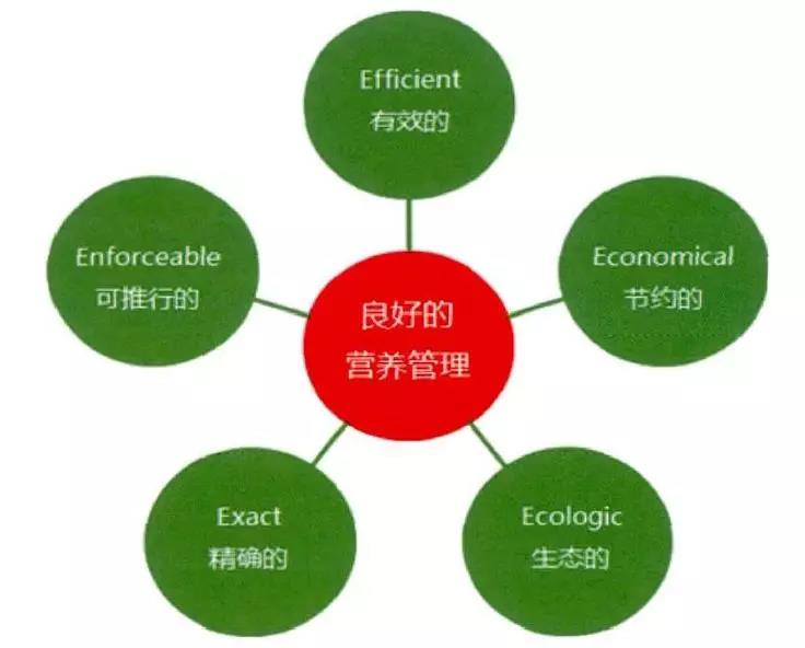 注:優秀營養管理模式應該具備5“E”特征,即Efficient(有效)、Exact(精確)、Enforceable(可推行)、Economical(節約、省錢)、Ecologic(生態、環保)。
