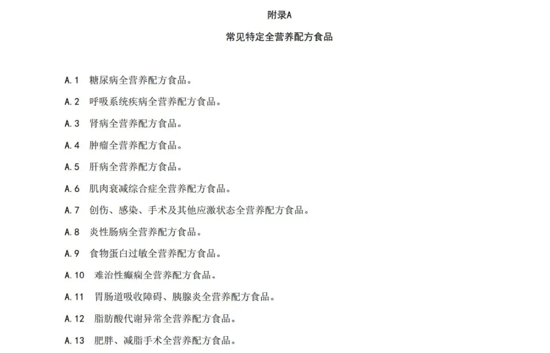 特醫食品的目標消費者范圍較廣,根據《特殊醫學用途配方食品通則》(GB29922-2013),特定全營養配方食品分為13類: