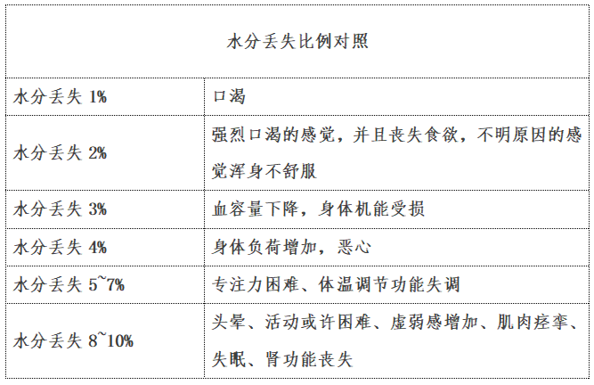 如果人們處于高海拔、低濕度或者高溫地區(qū)都會(huì)增加肺部和汗液中的非顯性失水。根據(jù)美國研究報(bào)告顯示,當(dāng)運(yùn)動(dòng)員在80華氏度(26攝氏度)以及低濕度的環(huán)境下鍛煉,會(huì)額外丟失3~4磅的水(1300ml~1800ml水),而且溫度越高,失水越多。